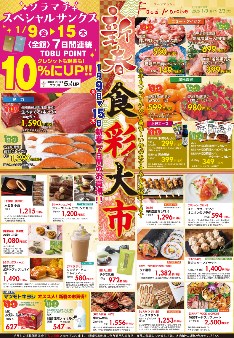 도쿄 소라마치" Food Marche "은 1월 9일(금요일)~ 1/15일(목요일)의 특별 감사 기간과 연계되어 있습니다.