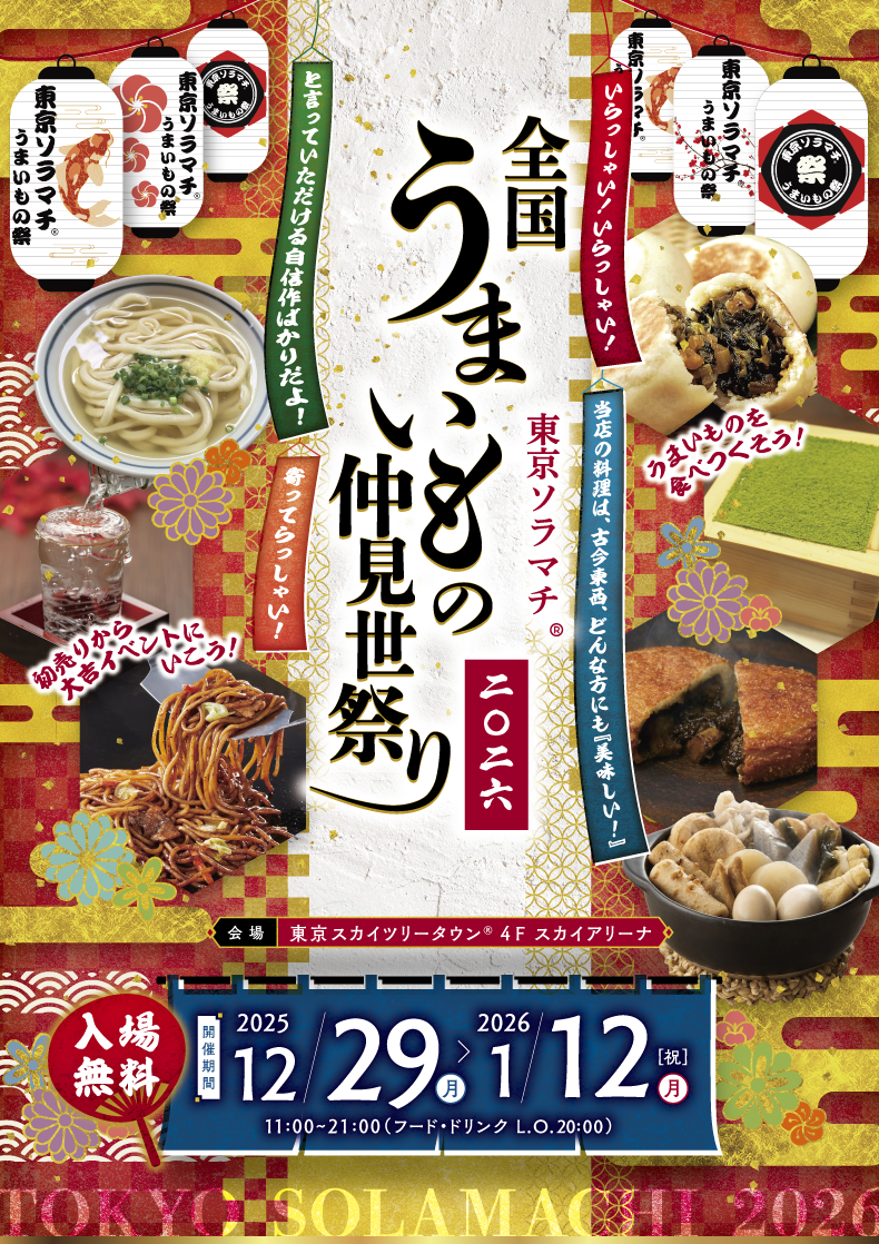 새해 기간 첫 미식 행사인 "도쿄 소라마치 ® 전국 맛있는 나카미세 축제"는 전국 각지의 현지 요리부터 화제인 B급 고급 음식까지 다양한 "맛있는 음식"을 선보입니다.