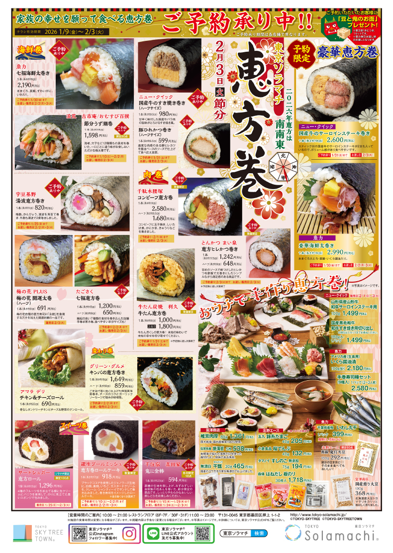 도쿄 소라마치" Food Marche "은 1월 9일부터 모든 매장에서 에호마키 예약을 시작했습니다!