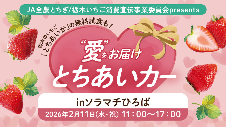 솔라마치 히로바에서는 도치기 현에서 딸기를 배급하는 주방차인 '도치아이카'가 이제 출시되었습니다!