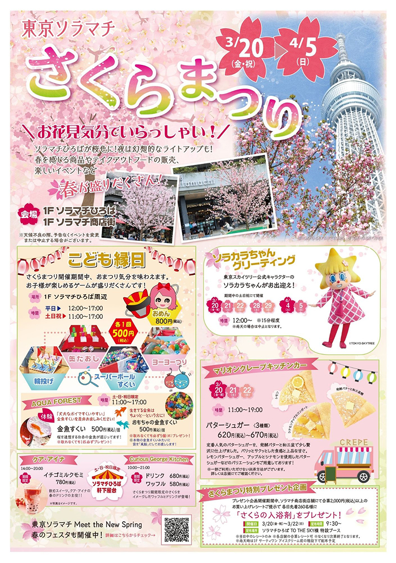 또한 박람회, 푸드트럭, 공식 도쿄 스카이트리 캐릭터 Sorakara-chan 인사회 등 다양한 재미있는 행사도 열립니다!