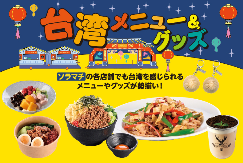 매년 인기 행사인 '대만 축제'를 기념하여 각 솔라마치 매장에는 대만인답게 느낄 수 있는 다양한 메뉴와 상품이 준비되어 있습니다!