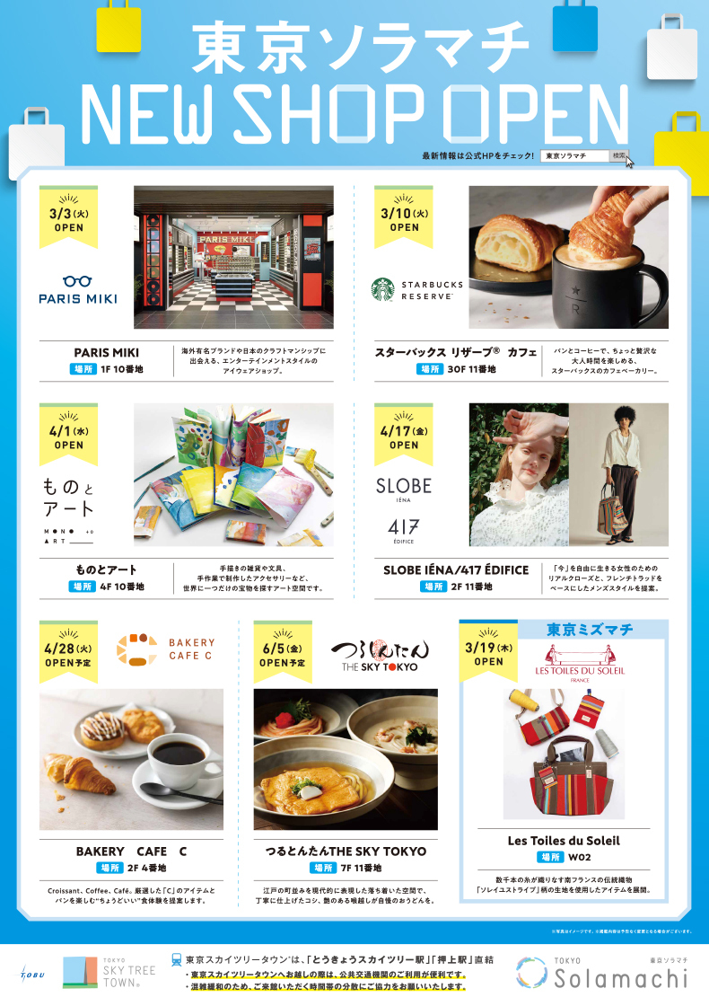 쇼핑과 식사를 즐길 수 있는 새로운 상점이 도쿄 소라마치 오픈할 예정입니다!