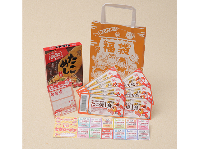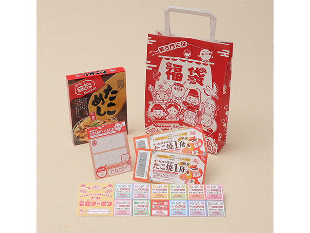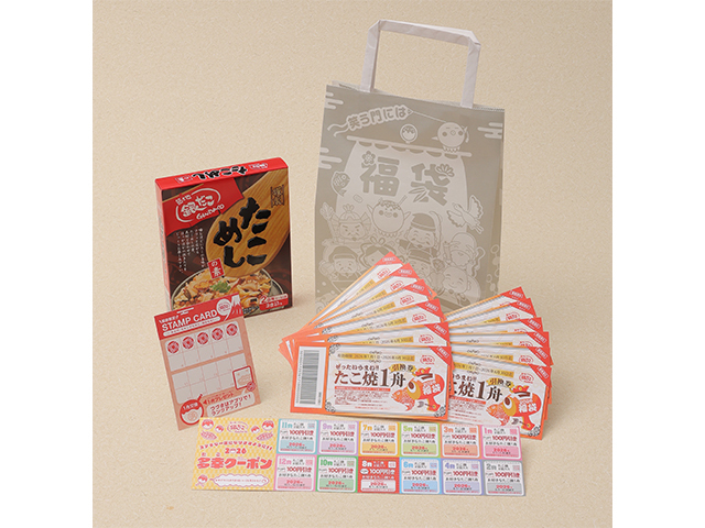 내용은, 타코야키 교환권, 타코메시노모토, 할인 쿠폰권, 스탬프권이 들어 있습니다.