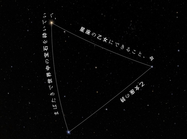 만천의 별이 빛나는 밤하늘에 낭독에 맞춰 문자가 떠오르면 사라진다. 시의 단편이 별 사이를 달리거나 별자리선 위에서 튀기거나・・・.
