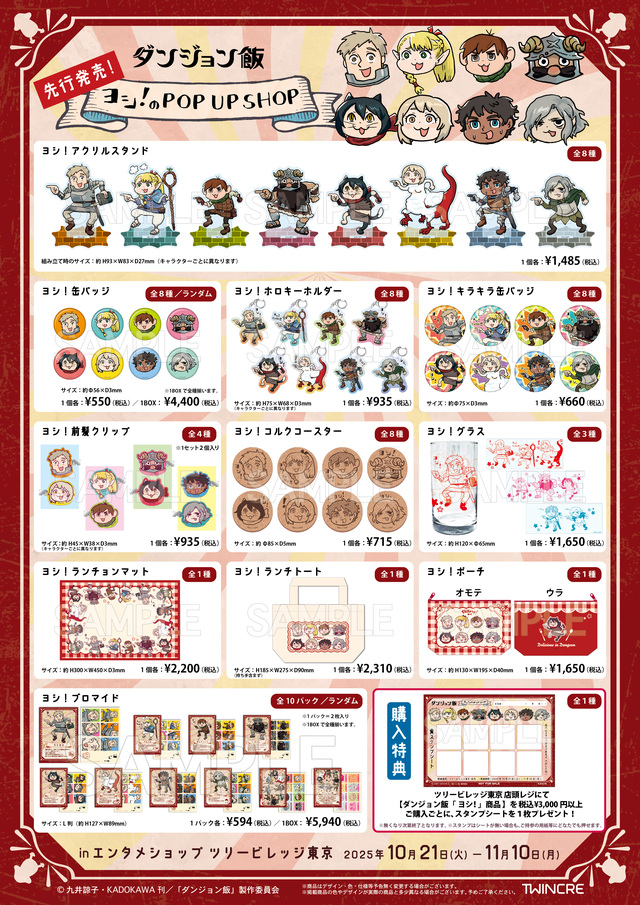 트리 빌리지 도쿄점에서 「던전 밥」 상품의 선행 판매가 결정!