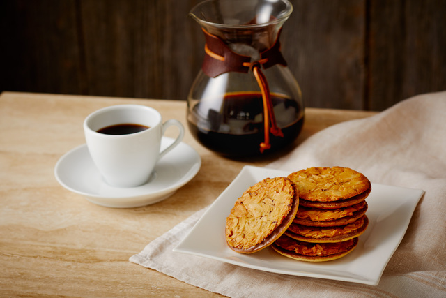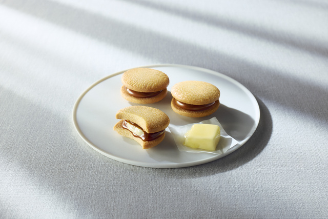 보름달과 같은 마루 사브레로, 수제 가마 볶음 캐러멜과 버터 크림을 샌드했습니다. 농후한 캐러멜과 감칠맛이 있는 버터 풍미가 입 가득 퍼집니다.
