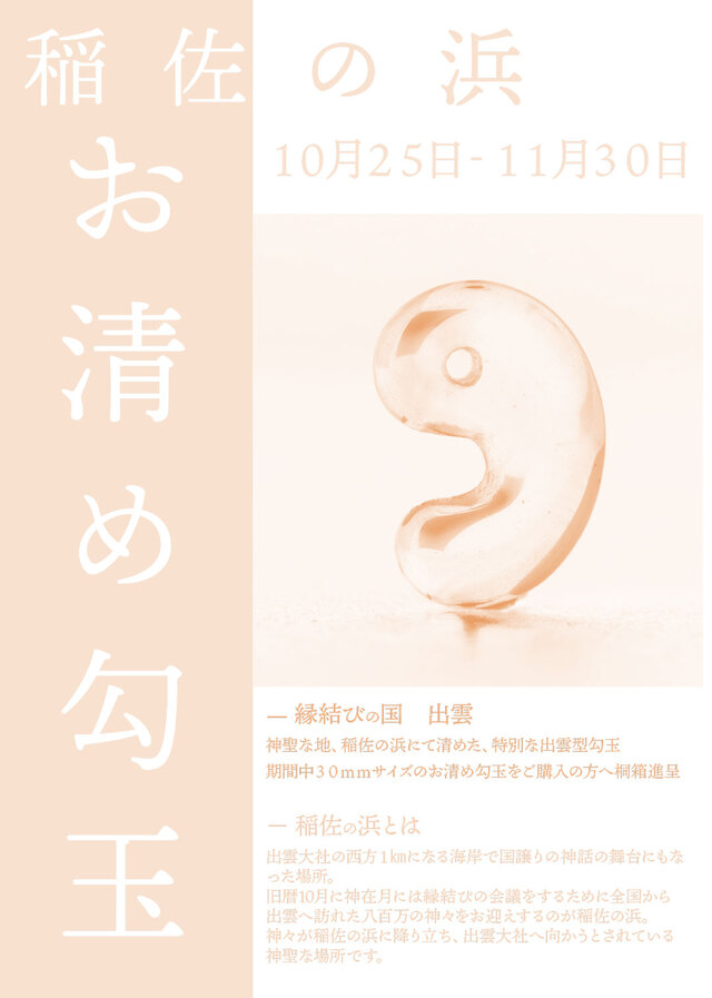 신들이 상륙한다고 하는 이나사의 해변. 신성한 장소에서 깨끗한 곡옥을 꼭 봐 주세요.