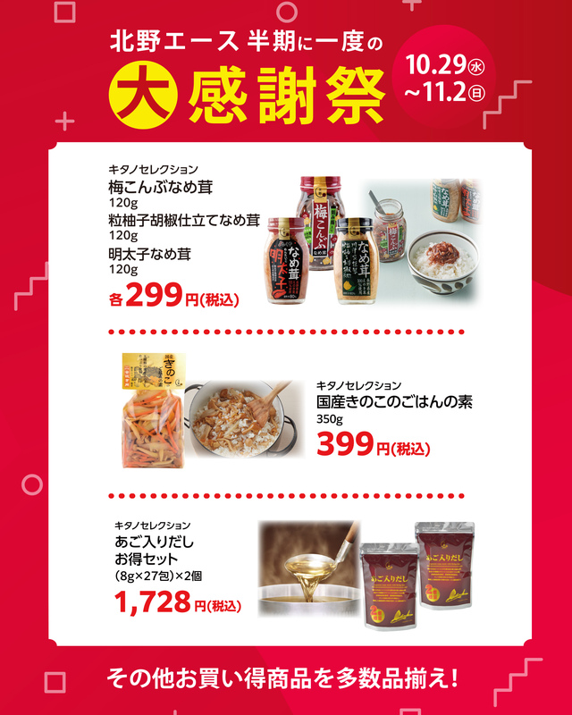 KITANOACE 10/29(수)부터 11/2(일)까지 항상 애용해 주셔서 감사합니다만,