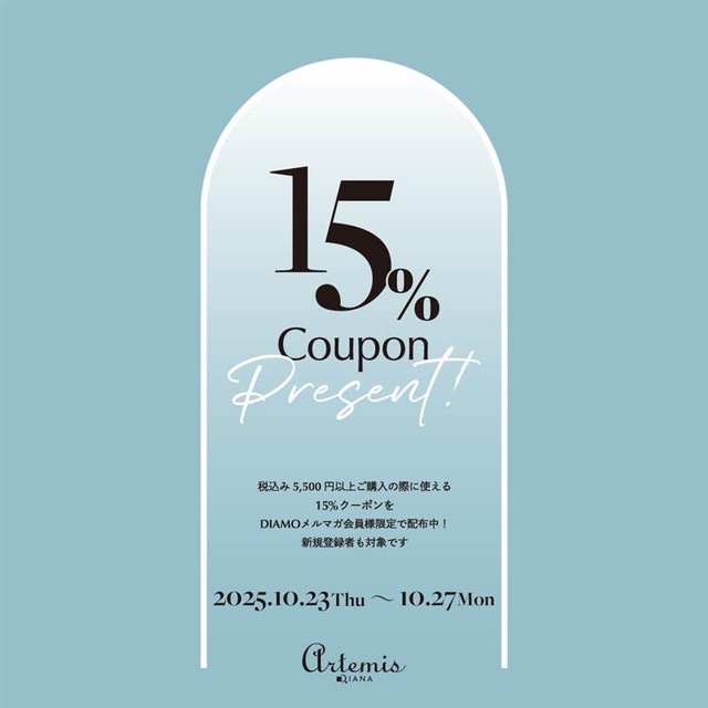 10월 23일(목)~10월 27일(월)의 5일간, DIAMO 회원님 한정으로 5,500엔(부가세 포함) 이상의 매입으로 이용하실 수 있는, 15%OFF 쿠폰을 배포 하겠습니다♡