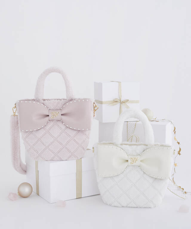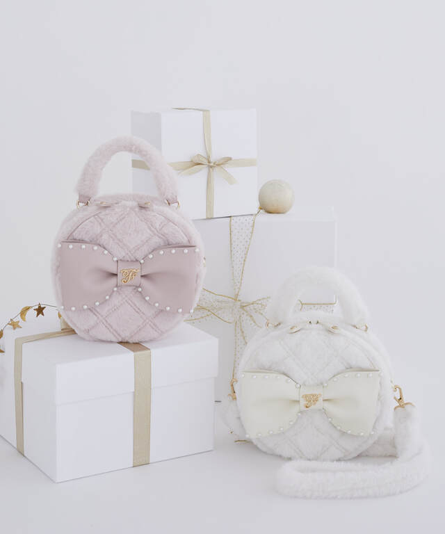 ☑フェイクファーパールリボンラウンドバッグ