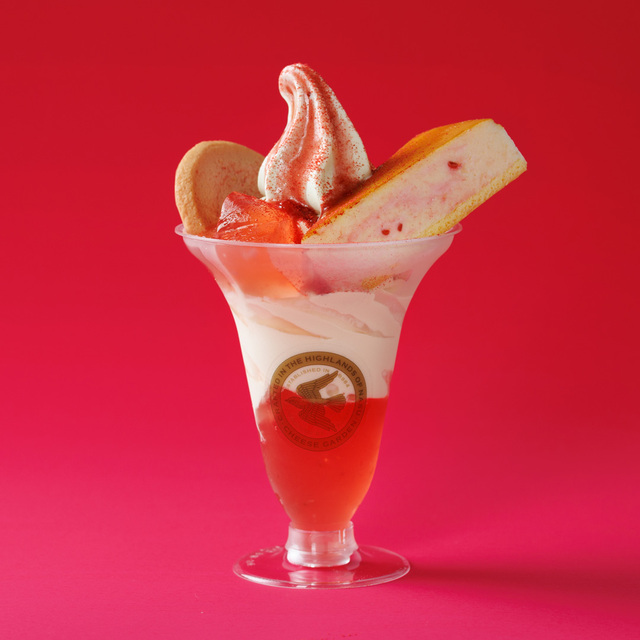 몇 종류의 치즈를 블렌드한 천에, 토치기현산 「토치아이카」의 딸기 퓌레와 흰 팥소를 합친 딸기 떡, 세세하게 새긴 프리즈 드라이 스트로베리 등을 섞어, 촉촉하게 구워 냈습니다.