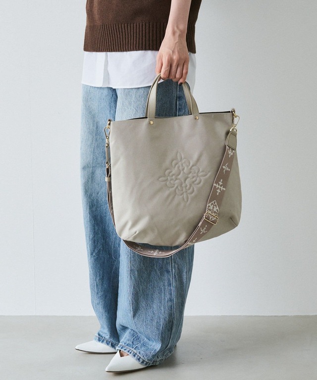 매트한 질감의 코듀라나이론에 모노그램의 모티브를 섬세한 자수로 표현.