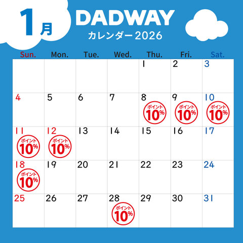 잡화 & 패션1월 포인트 캘린더DADWAY/Ergobaby2026年1月8日 ~ 2026年1月28日 -