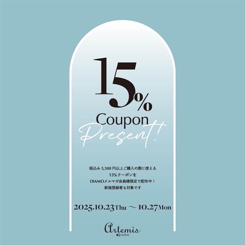 잡화 & 패션☆DIAMO会員様限定 15%OFFクーポン☆artemis by DIANA2025年10月23日 ~ 2025年10月27日