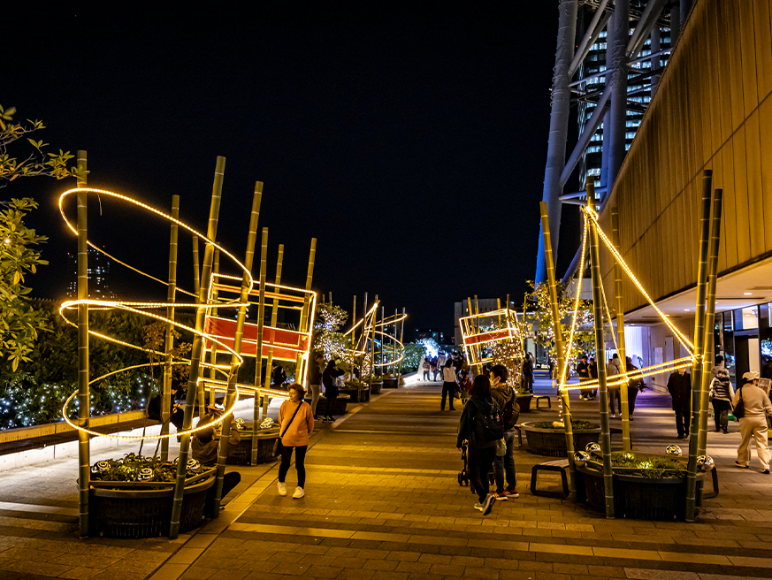 스미다 리버 워크 주변에서는, 대나무 아카리를 사용한 라이트 업 이벤트를 개최.