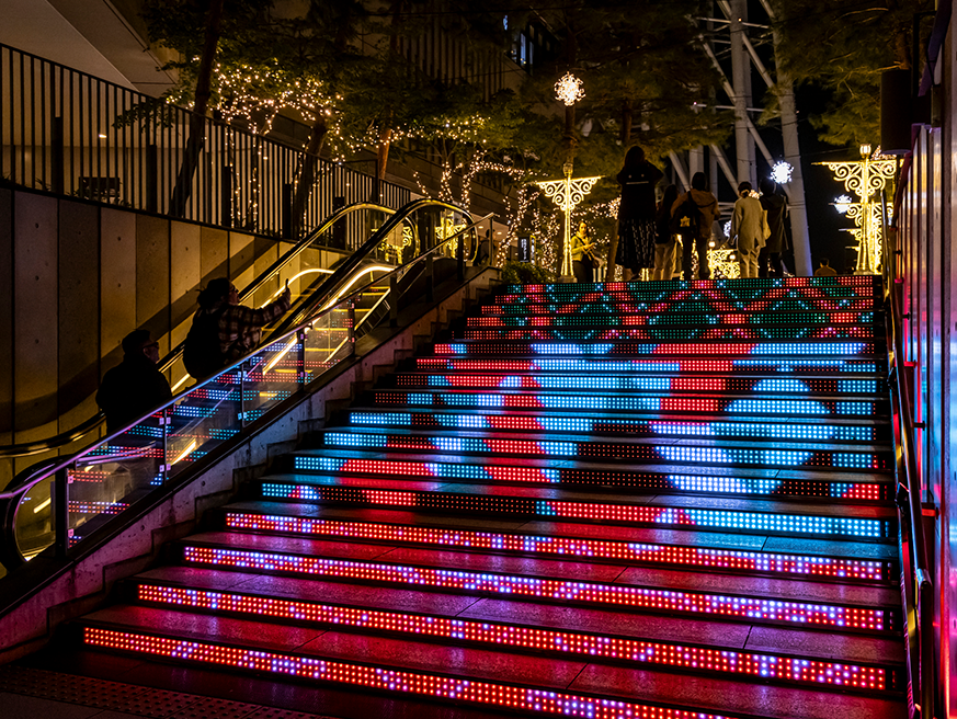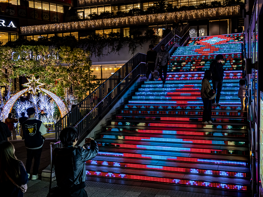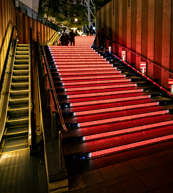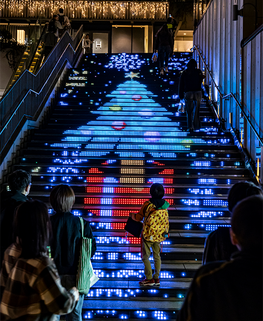 계단을 LED 그래픽 조명으로 라이트 업하는 「계단 그래픽 라이팅」이 등장!